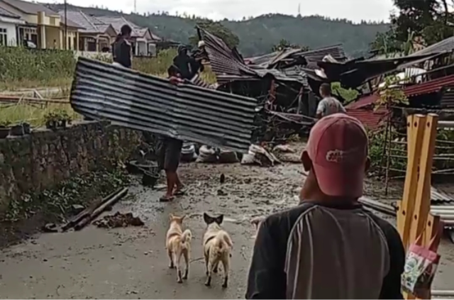 Informasi dihimpun, sedikitnya 20 rumah warga mengalami kerusakan parah beserta sejumlah pohon tumbang.