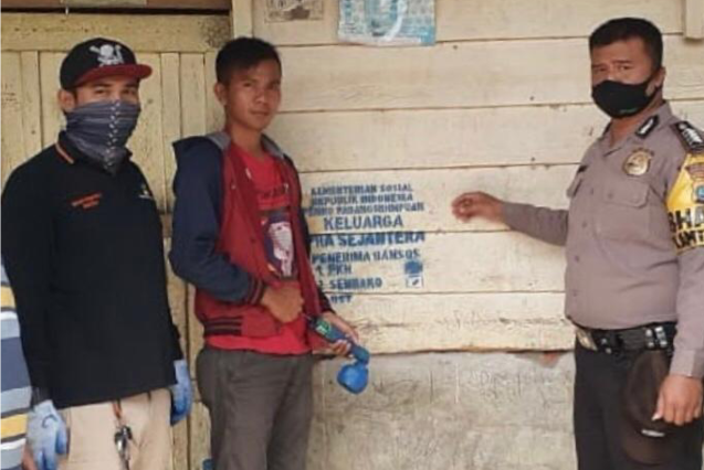 Dinas Sosial didampingi Bhabinkamtibmas juga menghimbau masyarakat agar senantiasa menggunakan masker, jaga jarak, dan cuci tangan sesering mungkin.