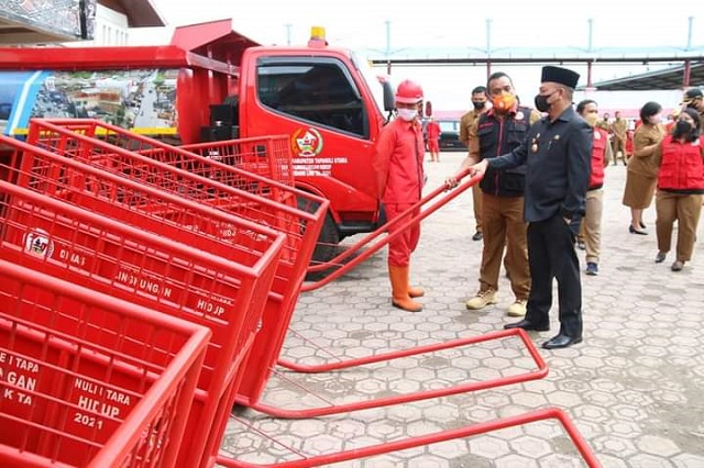 Usai apel siaga, Bupati Taput menyerahkan Kendaraan Operasional Persampahan di dampingi Kadis Lingkungan Hidup yang bersumber dari alokasi kegiatan DAK Fisik Penugasan T.A 2021 sebesar Rp. 3.590.000.000. Adapun Kendaraan Operasional Persampahan Amroll sebanyak 2 unit, Dump Truck 5 unit, Motor Sampah roda 3 sebanyak 12 unit, Gerobak Pilah 10 unit, Kontainer Sampah Amroll Truck sebanyak 4 unit/ Jumlah keseluruhan sebanyak 31 Unit. (Fer)