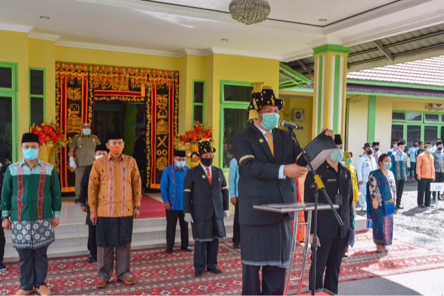 Upacara berlangsung dengan menjaga protokol kesehatan, jumlah peserta upacara terbatas, menyediakan cuci tangan dan pengukur suhu tubuh.