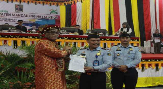 Acara serah terima hibah dilaksanakan pada saat Rapat Pleno HUT ke-24 Kabupaten Mandailing Natal yang diserahkan langsung oleh Bupati Mandailing Natal Jafar Sukhairi Nasution dan Wakil Bupati Mandailing Natal Atikah Azmi Utammi kepada Kepala Kantor Imigrasi Sibolga Saroha Manullang di Ruang Serbaguna Kabupaten Mandailing Natal.