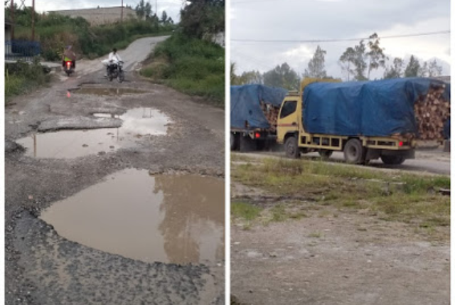 truk mitra TPL (Toba Pulp Lestari) diduga selalu bermuatan melebihi kapasitas yang memicu cepatnya kerusakan jalan umum.