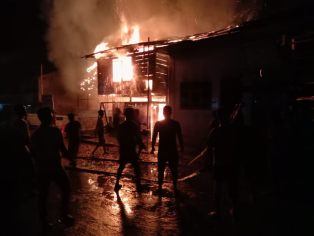 “Sementara dari keterangan yang kita himpun, bahwa sumber api berasal dari kantor lurah, lalu merembes ke rumah warga, dimana kantor lurah berdekatan dengan rumah tersebut serta bagunan tersebut masih semi permanen.” Lanjutnya.