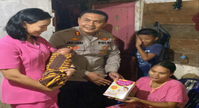“Kehadiran kami ini sebagai bentuk perhatian Polri dan bantuan yang kami berikan semoga bermanfaat untuk ibu dan bayi” Ucap Kapolres