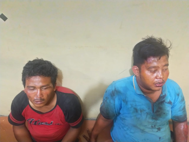 Dalam kondisi badan dan wajah babak belur diduga dipukul warga sebelum kehadiran polisi. Lalu, kedua pelaku digelandang ke Mapolsek Namorambe bersama barang bukti.