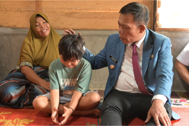 Bupati pun bertemu dengan istri korban, Masnida dan kelima anak korban yang kini mengungsi ke tempat keluarganya di Kelurahan Binasi Kecamatan Sorkam Barat pada Rabu (01/10/2025).
