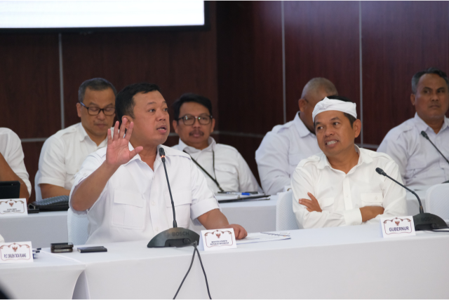 Hadir mendampingi Menteri Nusron, Direktur Jenderal Penetapan Hak dan Pendaftaran Tanah (Dirjen PHPT) Asnaedi; Dirjen Survei dan Pemetaan Pertanahan dan Ruang (SPPR), Virgo Eresta Jaya; Plt. Dirjen Tata Ruang, Reny Windyawati; Kepala Biro Hubungan Masyarakat, Harison Mocodompis; Direktur Bina Perencanaan Daerah Wilayah I, Rahma Julianti; dan Kepala Kantor Wilayah BPN Provinsi Jawa Barat beserta jajaran. (R)