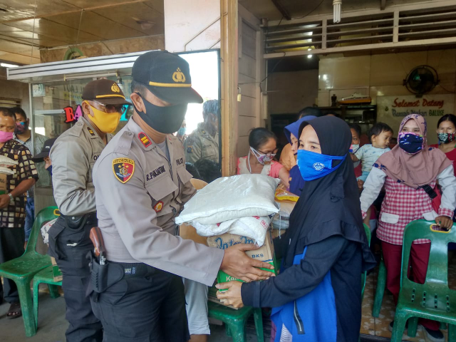 BeritaTapanuli.com, Sibolga – Momentum peringatan Hari Ulang Tahun (HUT) RI yang ke 75 dan wujud nyata kepedulian Polri,  Polres Sibolga bagikan beras, mie instan dan minyak goreng ke masyarakat, Rabu (19/8).