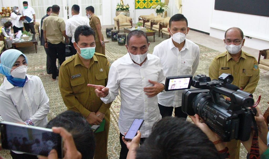 “Kepada bupati dan wali kota sesuai dengan kondisi, kalau sudah usia lanjut (60 tahun ke atas) jangan, komorbid jangan. Bila bupatinya tidak bisa, wakilnya, begitu juga dengan wali kota, kalau tidak bisa juga Sekdanya, kalau tidak bisa juga asisten, kalau Kadiskes wajib karena tenaga kesehatan,” sebut Edy Rahmayadi.