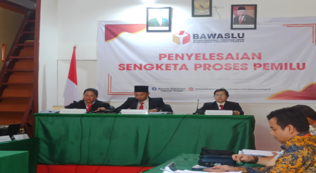 Sidang digelar di kantor Bawaslu Tapteng, dipimpin oleh Rommi Pasaribu (Ketua sidang), Sinta Napitupulu dan Setiawati Simanjuntak.