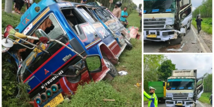 Sehingga dari arah berlawanan datang mobil truk lalu kedua kendaraan bertabrakan. Akibatnya benturan cukup keras tak terhindarkan.
