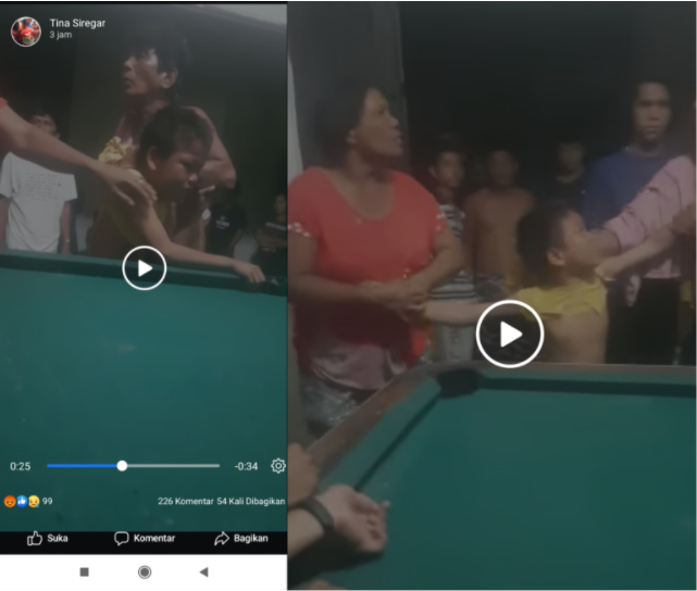 Dalam video yang diunggah berdurasi 59 menit itu, terlihat ditonton oleh banyak orang, seolah tidak ada yang berani mencampuri pertikaian tersebut.