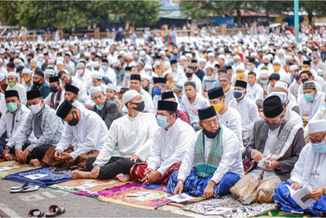 Wali Kota Padangsidimpuan Irsan Efendi Nasution, Wakil Wali Kota Padangsidimpuan Arwin Siregar, Ketua DPRD Kota Padangsidimpuan Siwan Siswanto, Dandim 0212/TS Letkol (Inf) Akbar Nofrizal Yusananto, Kapolres Padangsidimpuan AKBP Juliani Prihartini sholat bersama dengan ratusan masyarakat Kota Padangsidimpuan.