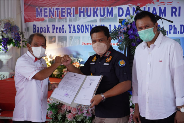 Penyerahan tersebut disaksikan langsung oleh Menteri Hukum dan HAM Yasonna Laoly di sela melakukan kunjungan kerja di Kepulauan Nias, Jumat (28/01).