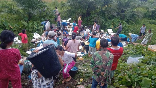 Warni warga yang turut mengutip ikan hanya mengaku, ini karena jatuh tadi pak, ada kecelakan hingga ikanya tertumpah, mobilnya langsung pergi,” ujarnya singkat.