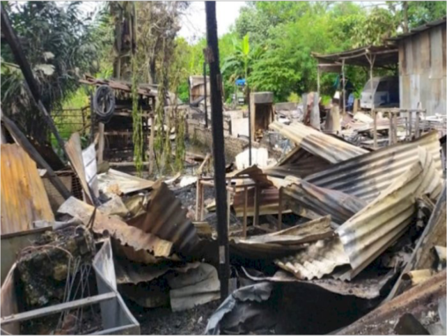 Sekitar 90 persen bangunan ludes dibakar api. Dan setelah kurang lebih satu jam tiba di lokasi kejadian dan api berhasil menjinakkan.